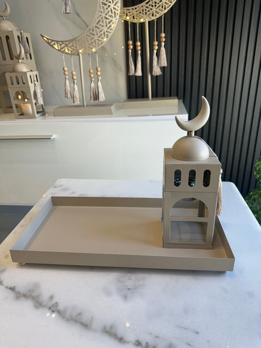 Cream Square Stand Tray with Mabkhara صينية تقديم مع مبخرة