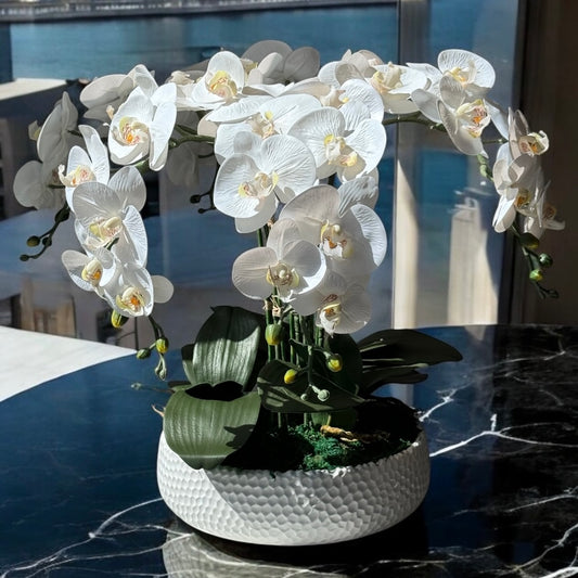 White Ceramic Vase with Artifical Orchids