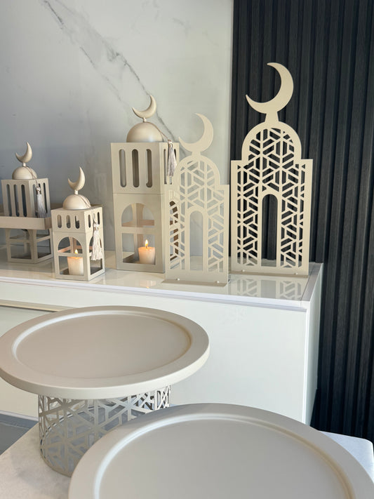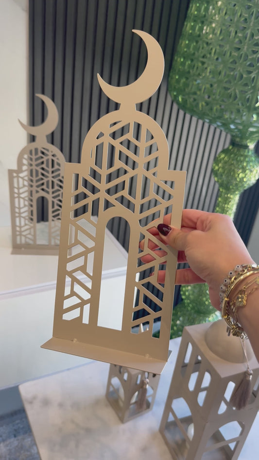 Set of Two Cream Metal Mosque Stands