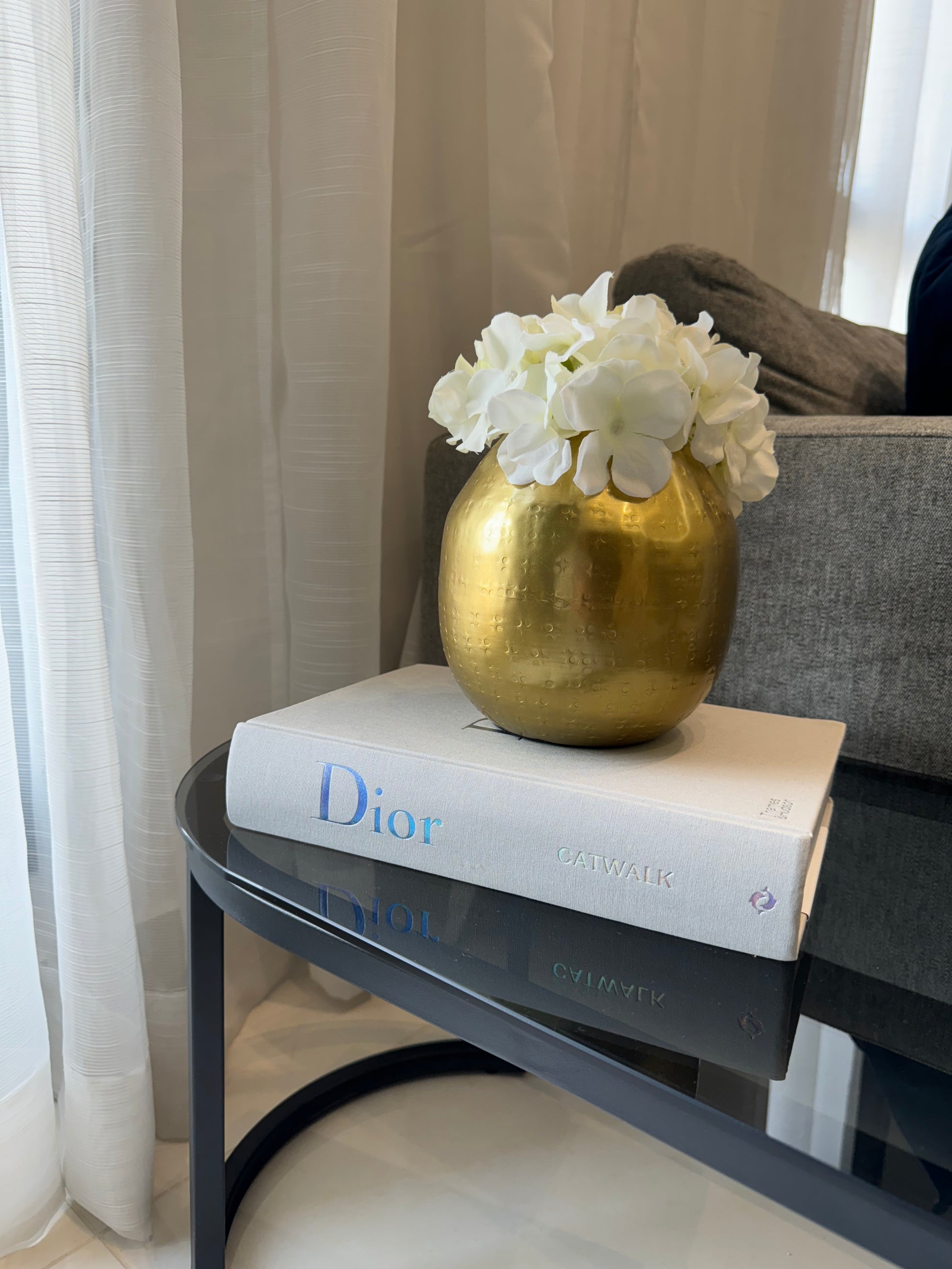 Gold Vase with Hydrangea Artificial Flowers