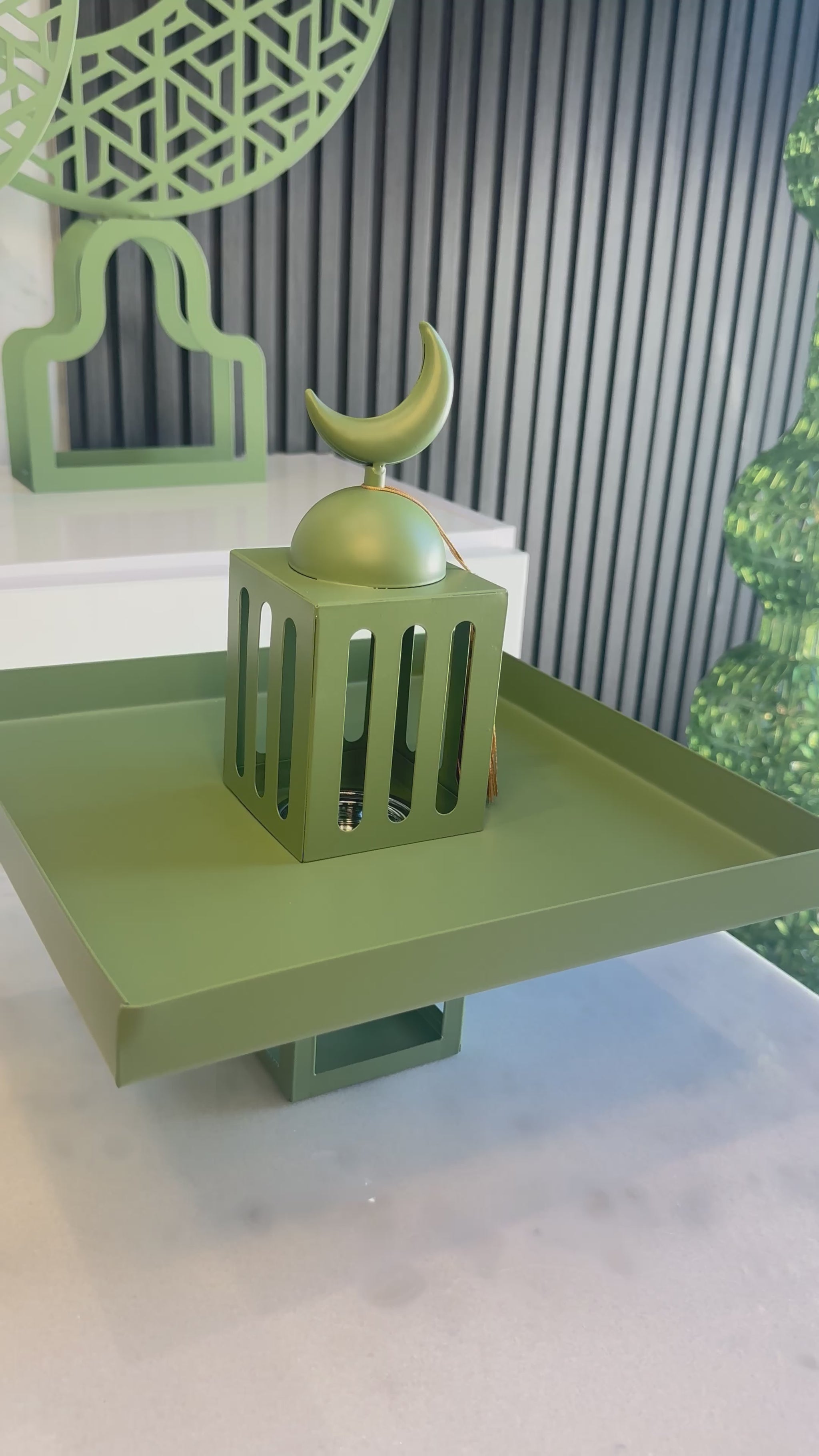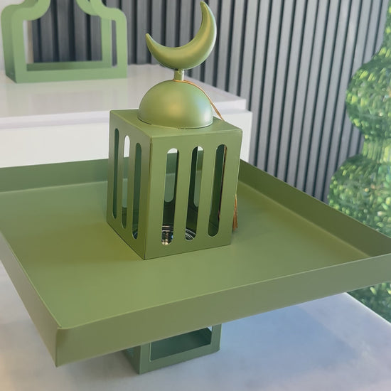 Green Square Stand Tray with Mabkhara صينية تقديم لون اخضر مع مبخرة
